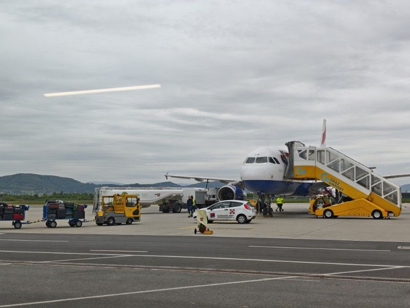 Wir haben eine ruhige Nacht, trotz des nahen Flughafens und des Regens in der Nacht. Der Morgen ist sehr grau in grau, aber nicht zu kalt.