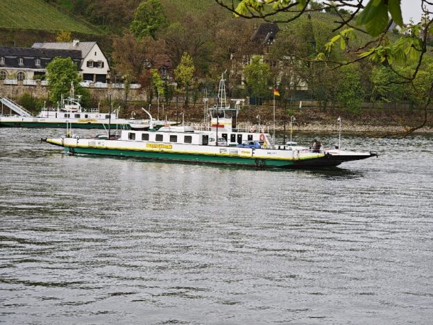 Nun erreichen wir den Rhein und setzen mit der Fähre „Landskrone I“ von Kornsand nach Nierstein über.