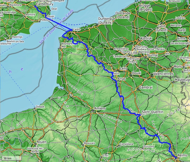 Karte Canterbury – Reims