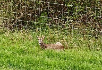 Von Trebur geht es in Richtung Rhein. Die Ruhe der Landschaft wird heute nur durch die Flugzeuge gestört.Der Rehbock lässt dich nur durch uns kurz beim Wiederkäuer aus der Ruhe bringen.