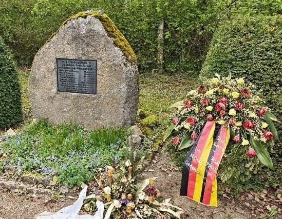 Kurz vor Kornsand kommen wir an einem Gedenkstein für die Opfer des Kornssnd-Verbrechens vorbei. Am 21. März 1945, wenige Stunden bevor die US-Truppen den Rhein überquerten wurden sechs Menschen heimtückisch von NS -Schergen umgebracht.