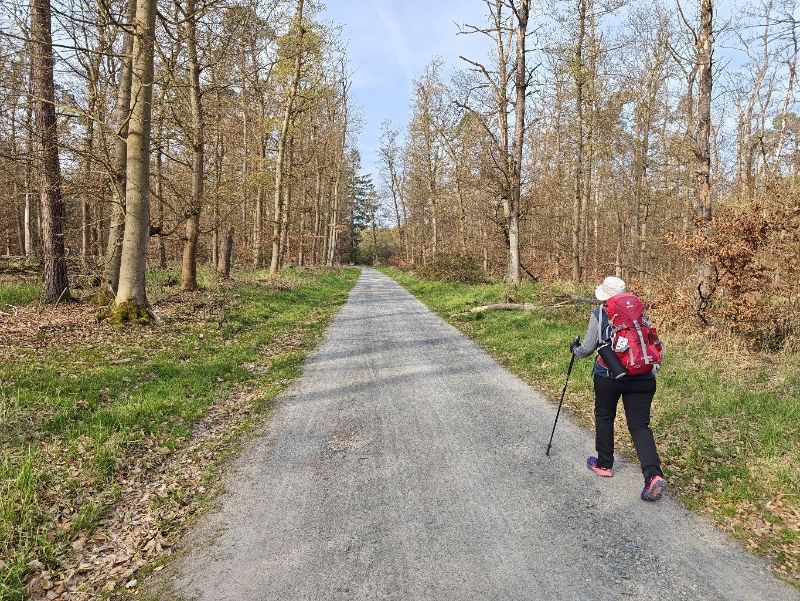 Gegen Frankfurt zu werden die Markierungen auf Feldern durch Hinweistafeln ersetzt. Wahrscheinlich sind sie zu oft den landwirtschaftlichen Maschinen zum Opfer gefallen. Der Asphaltanteil ist zeitweise hoch, aber in guter Relation mit anderen Wegen. Im Osten gibt es noch ein paar Hügel, die aber nie steil werden. Im Westen verlaufen die Wege sehr flach. Stark befahrene Strecken müssen kaum begangen werden.