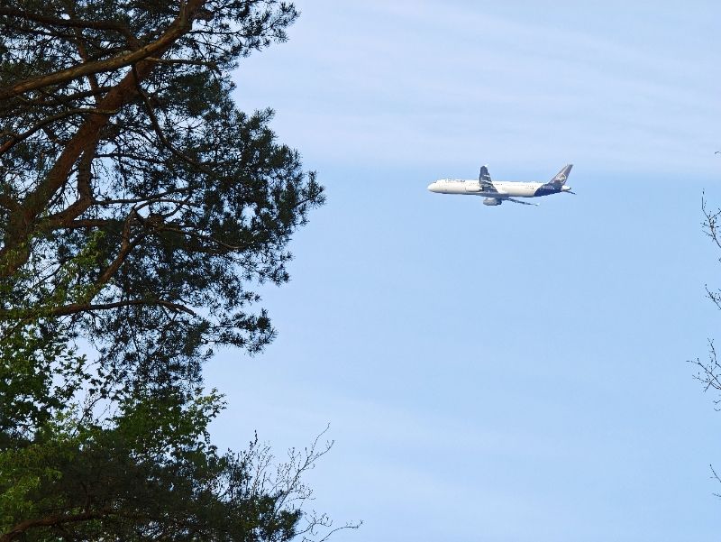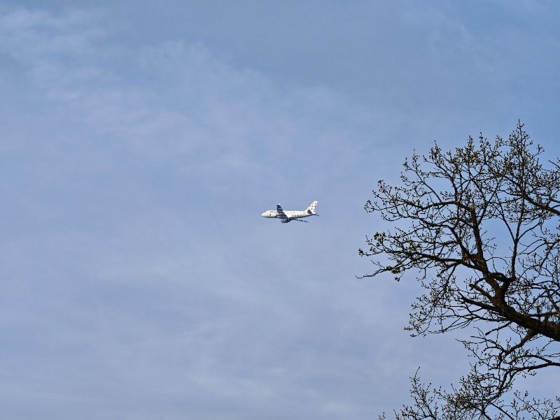 Von der Frankfurter Westpiste schießt ein Flugzeug nach dem anderen in den Himmel. Die Vögel versuchen den Lärm zu übertönen.