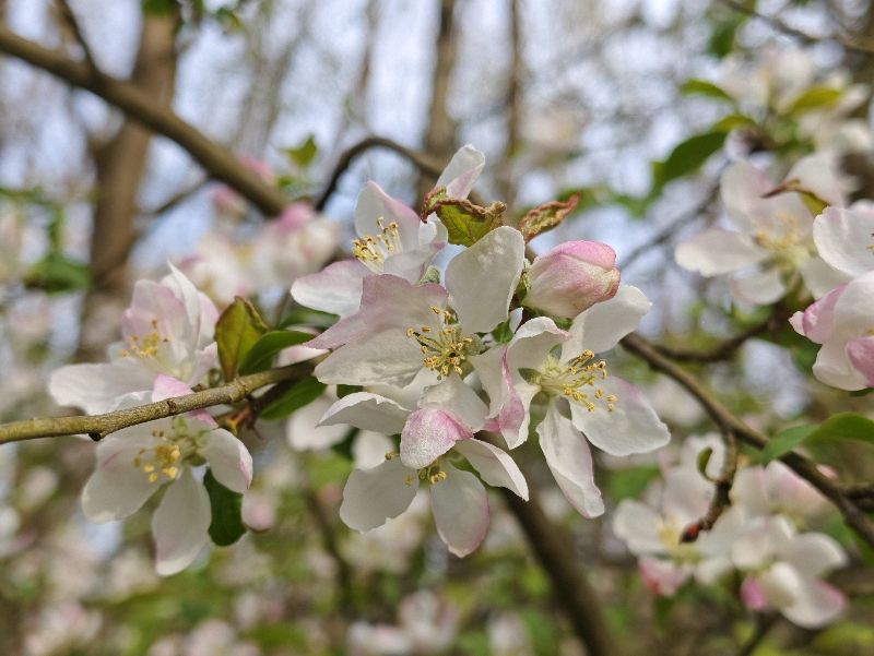 Im Wald blühen auch schon Apfelbäume.