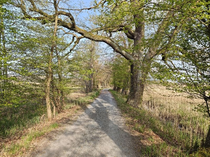 Entlang der offenen Flächen begleiten uns Alleen von uralten Eichen- und Buchenbäumen.