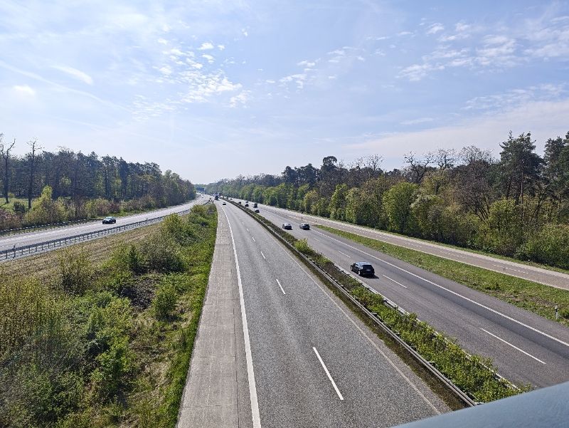 Dann geht es vorerst über die Autobahn A5 und dann über die Bahnanlagen der Riedbahn. Auf der Autobahn ist richtig die Hölle los.