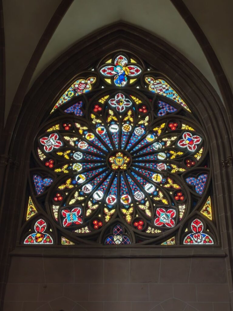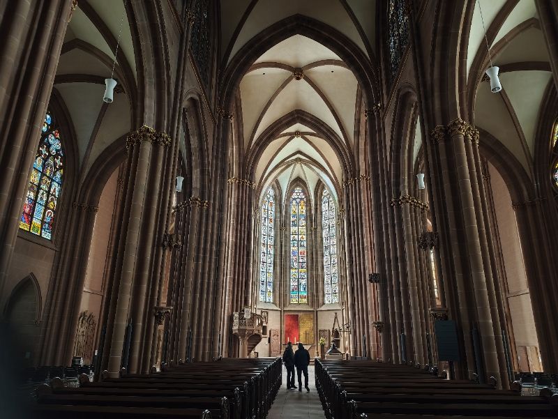 Dort besichtigen wir die Katharinenkirche, die gleich zwei Hauptaltäre aufweist, weil die Grenze der Diözesen Mainz und Worms durch die Kirche verläuft.