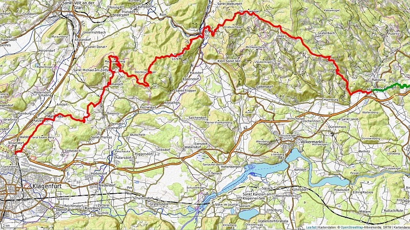Nach ausgiebigem Frühstück fahren wir mit Taxis an den gestrigen Endpunkt in Ottmanach zurück. Offentliche Verkehrsmittel sind Fehlanzeige.