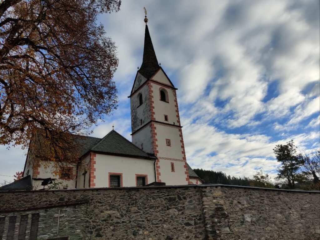 Bei der Pfarrkirche in Ottmanach beginnen wir die heutige Etappe.