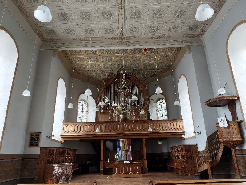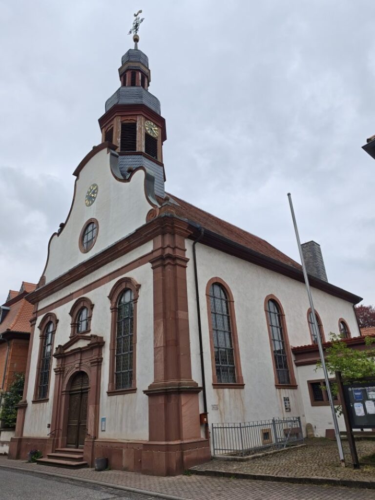 Bei der evangelischen Kirche finde ich auch einen Stempelkasten für unsere Pilgerstempel.