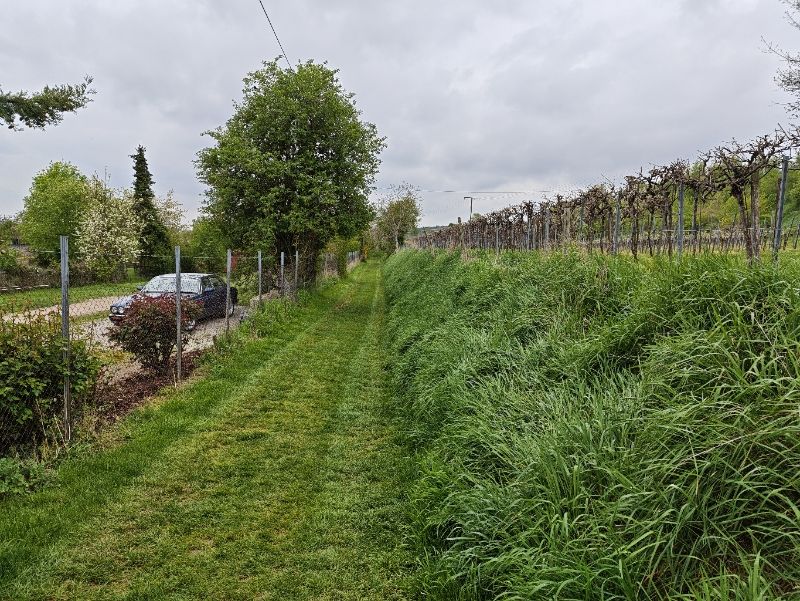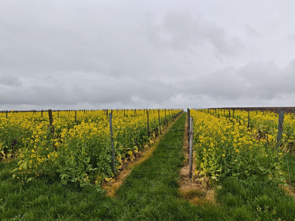 Zwischen den Weinzeilen wird Raps als Bodenaufbesserer gesät und dann gemulcht.